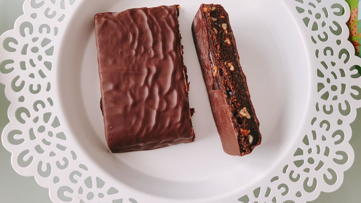 こちらは全体がチョコレートコーティング!と思って切ってみると中もグラノーラではなくチョコの生地にナッツが練りこまれている感じでした。