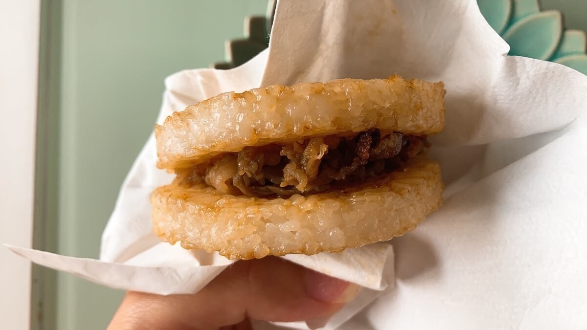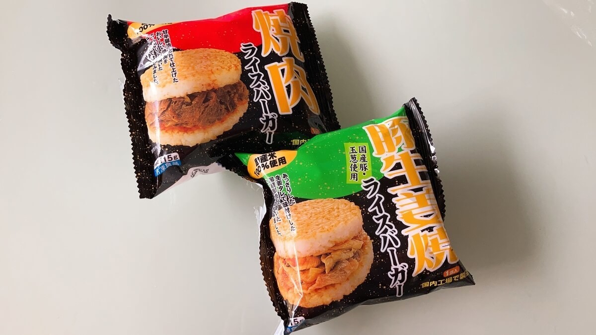 こちらは業務スーパーの冷凍食品コーナーでゲットできるライスバーガー。種類は「豚生姜焼き」と「焼肉」の2種類でどちらもなんと125円(税抜)。