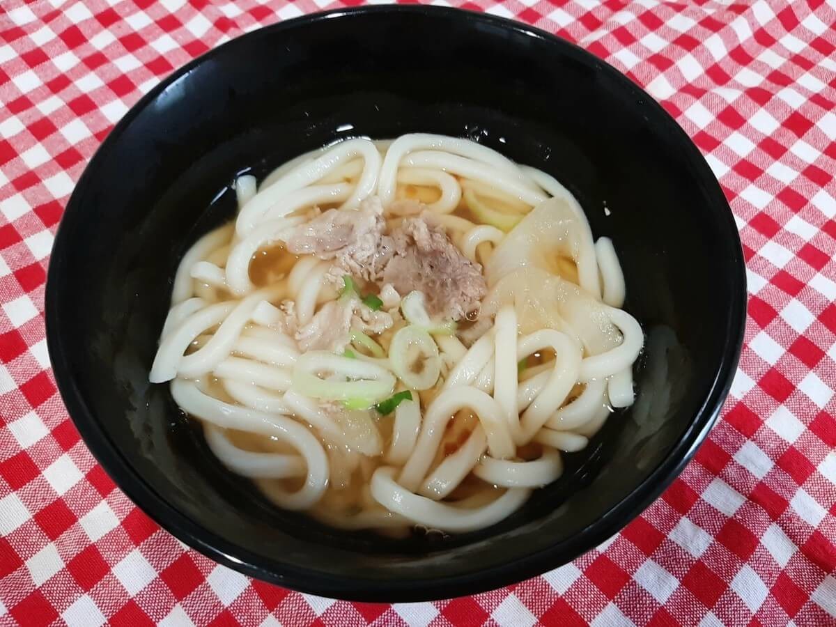 電子レンジ調理の場合はお皿にうどんをのせて500Wで5分半、スープにお湯をいれたら出来上がりです。