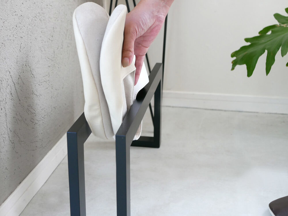 また、ラックの両側が空いているデザインなので、スリッパを上からだけでなく、横からスムーズに出し入れできるのも特徴です。