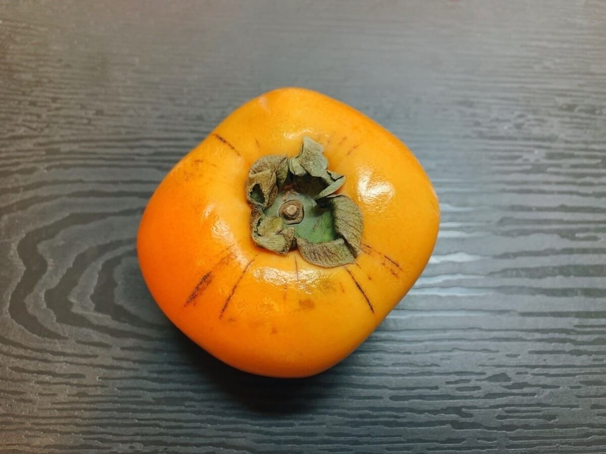 柿の色は、薄い色のものやくすんだ色のものではなく「濃くて鮮やかなオレンジ色」のものを選ぶとよいでしょう。また、形はいびつなものは避けるのがコツ。