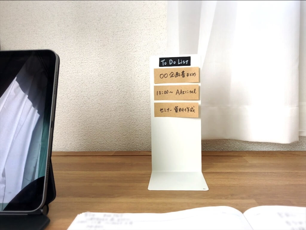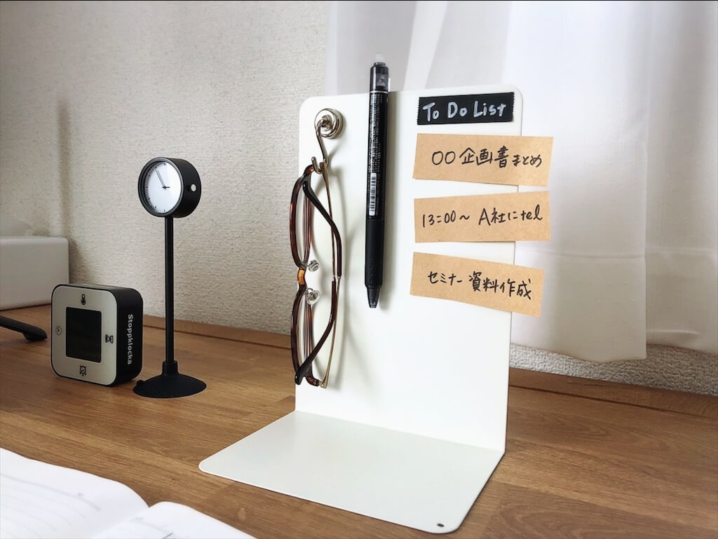 そんな時は、ダイソーのシンプルなブックエンドを、「付箋・メモボード」にするというアイデアはいかがでしょうか?