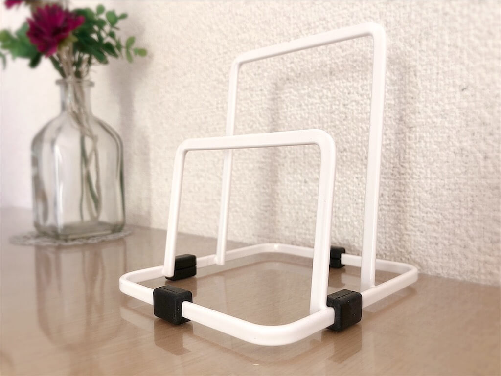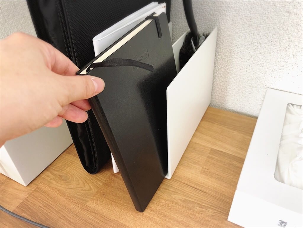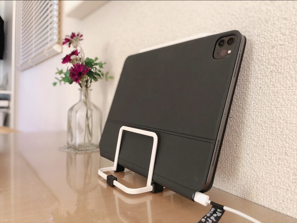 使っていないときのタブレットやノートパソコンを立てて省スペースに置いておきたい!という方にはぴったりじゃないかな?と思います。タブレットの画面はカバーなどで保護しましょう。