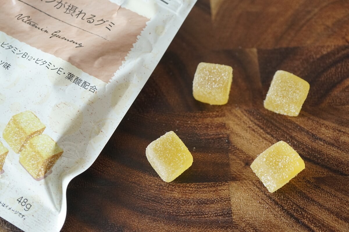 こちらは3種類のビタミンと葉酸が摂れるグレープフルーツ味のグミ。