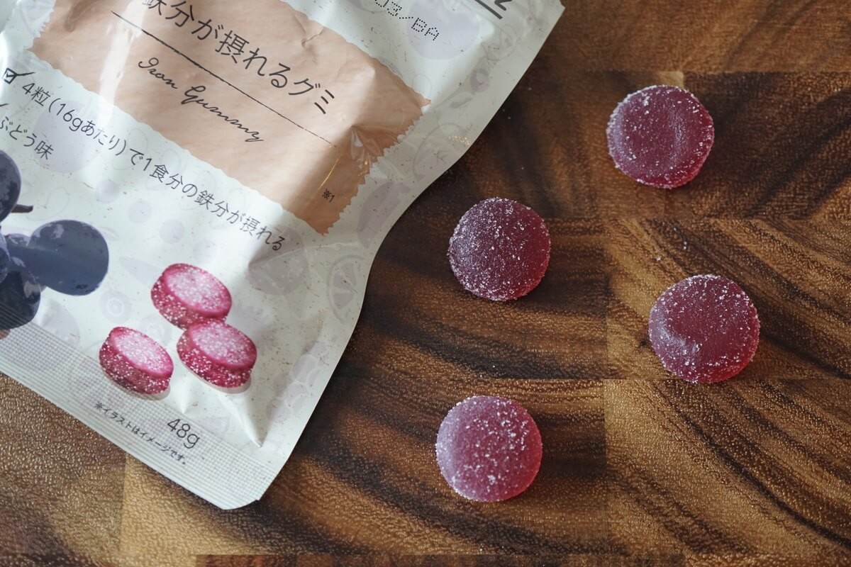 - 鉄分が摂れるグミ ぶどう味 128円(税込)