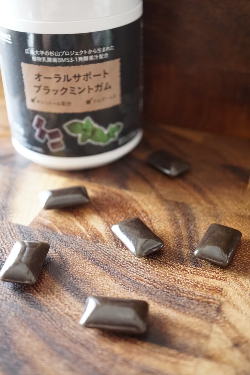 こちらもライトミントガムと同様に、植物乳酸菌BM53-1発酵果汁が配合されていて虫歯と歯周病の原因となるバイオフィルムを軟弱化してくれるそうです。