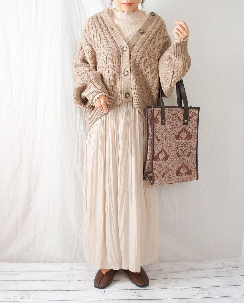 秋新作の中でも人気の「ケーブルコクーンカーディガン」のインに。