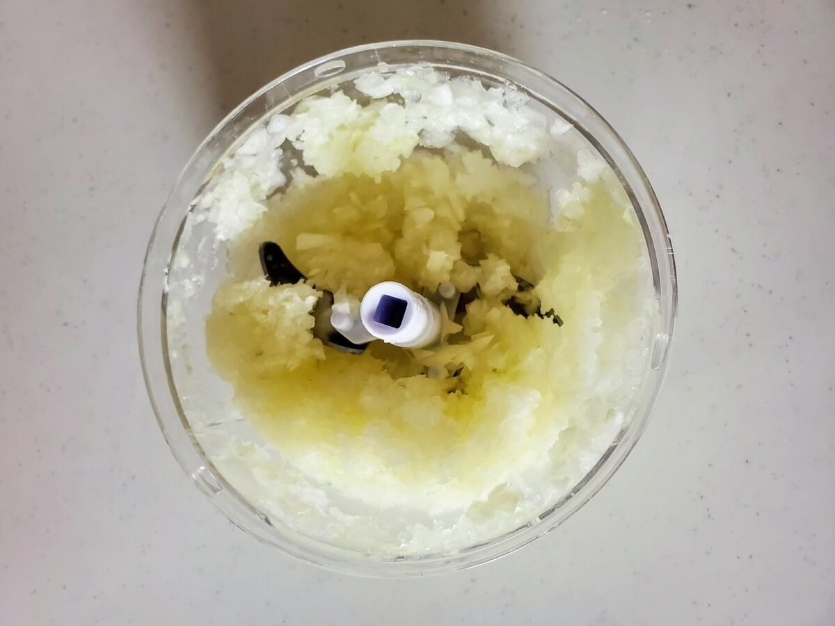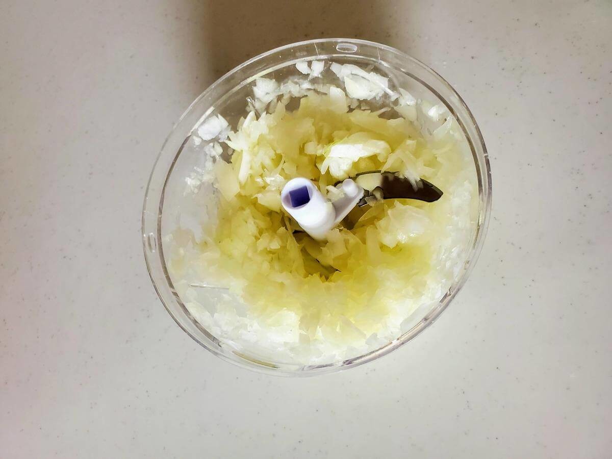 ハンバーグ用のみじん切りなら、10回くらい引っ張ったらもう完成。