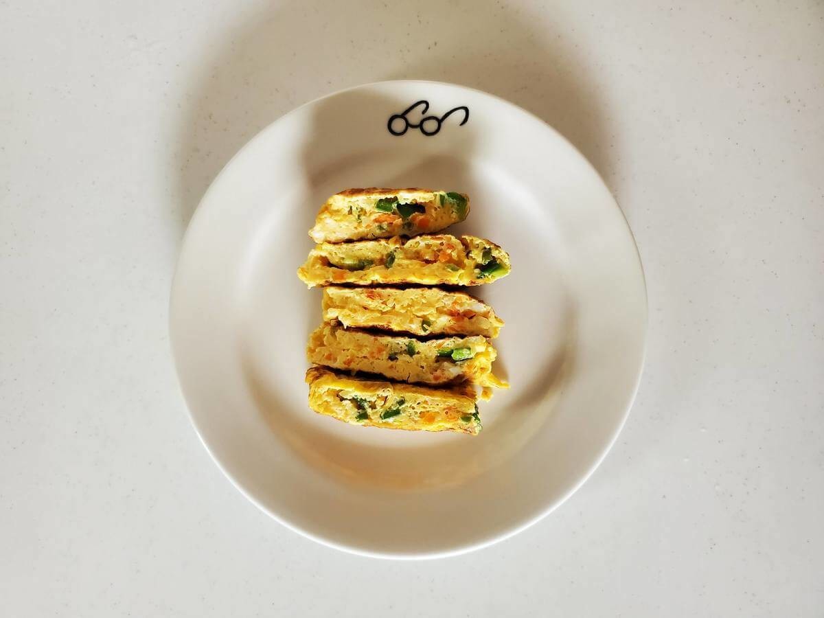 卵焼きにみじん切り野菜を混ぜるだけで、手軽に彩りと栄養バランスのアップができますね。
