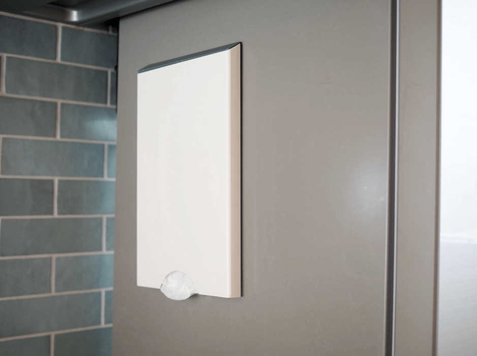 山崎実業「ゴミ袋ストッカー」は、ゴミ袋を冷蔵庫の壁面やシンクの扉に収納できるアイテム。