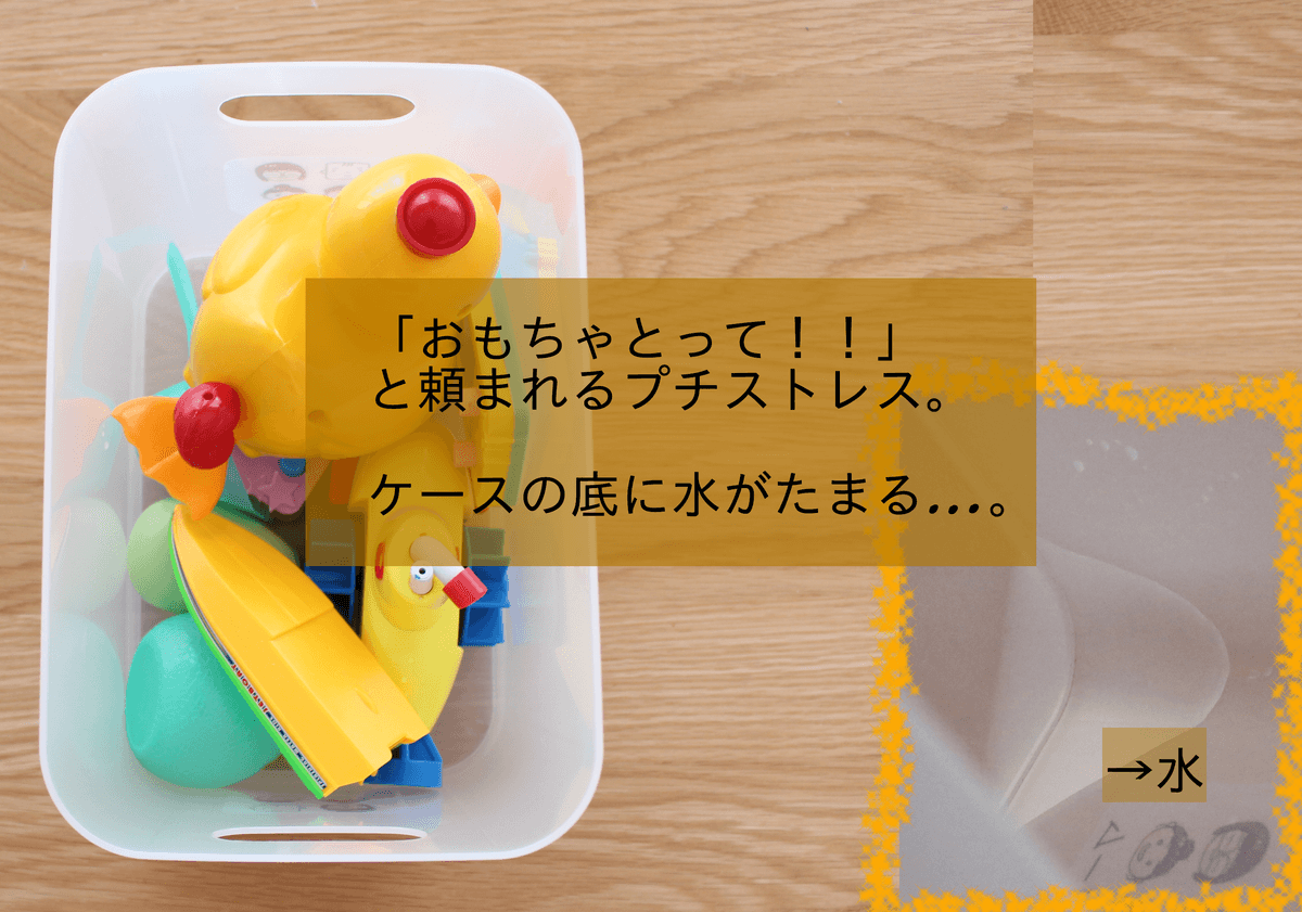 さらに、おもちゃの水気を拭いてケースに片付けても、底に水がたまることもしばしば。
