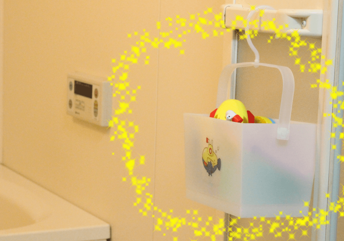 子どもが取りやすい高さということもあり棚にお風呂用のおもちゃを収納していましたが、浴室から離れているという盲点が!
