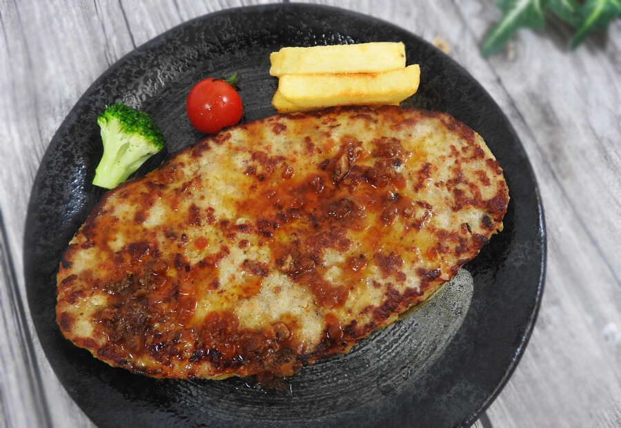 ハンバーグの厚みは1cmほど。厚みはさほどない印象ですが、1人ではとてもじゃないけれど、食べ切れるサイズではありません。