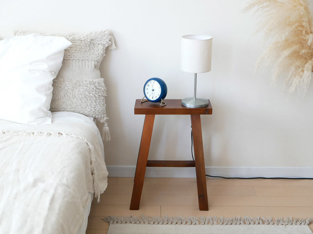 サイドテーブルとしても使えるので、ベッドルームがより快適な空間に。