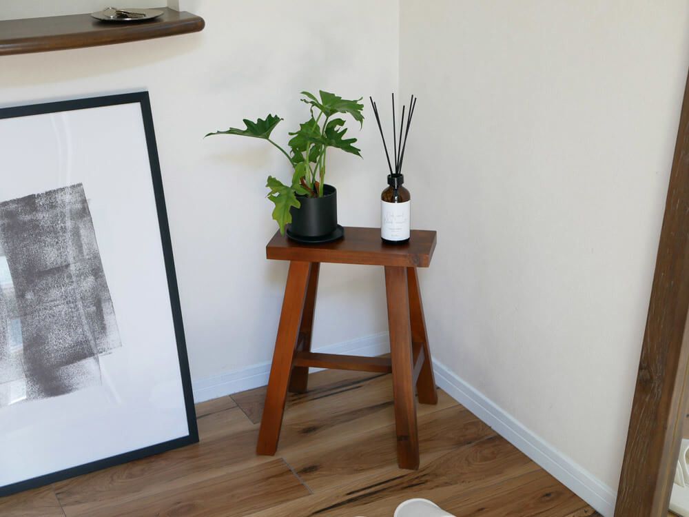 狭い場所でも置けちゃうスマートなスツールは、玄関スペースにもぴったり。