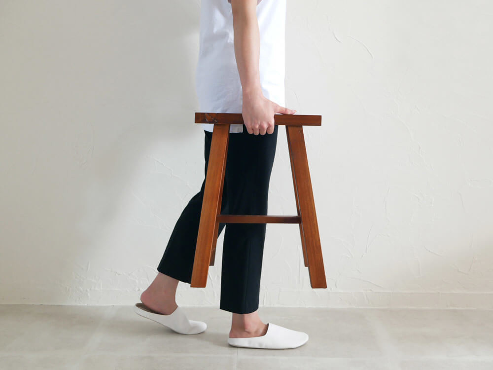 玄関、リビング、寝室、どこでも使える万能スツールだからこそ、持ち運びが楽なのは嬉しいポイントですよね。
