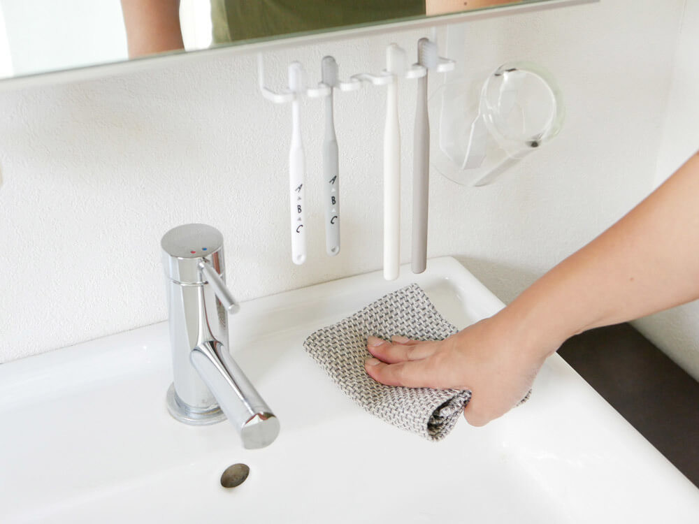 洗面台に直置きしておくと、どうしてもお掃除の時よけなくてはいけないのがちょっと面倒。