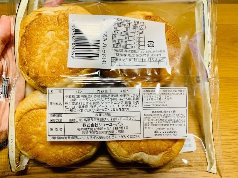コスモスのPB商品という位置づけではありませんが、コスモスで売っているコスパ最高のパンです。コスモスのホテルパンシリーズは他にも食パンやロールパンなどがありますが(そちらも風味豊かで激ウマ!)、こちらは食感と香ばしさが嬉しいくるみパンです。