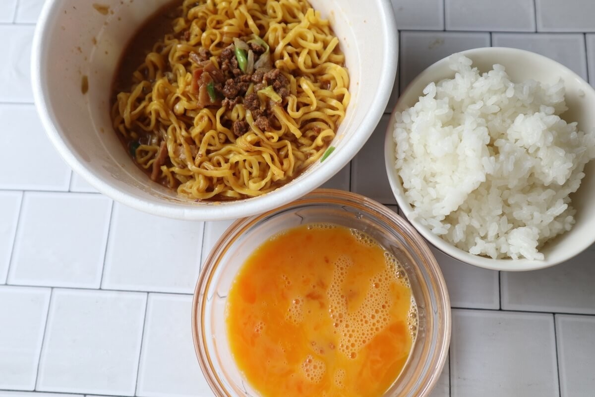 お湯よりも牛乳のほうが麺への吸収が悪いので、通常4分置くところ、6分置いてください。