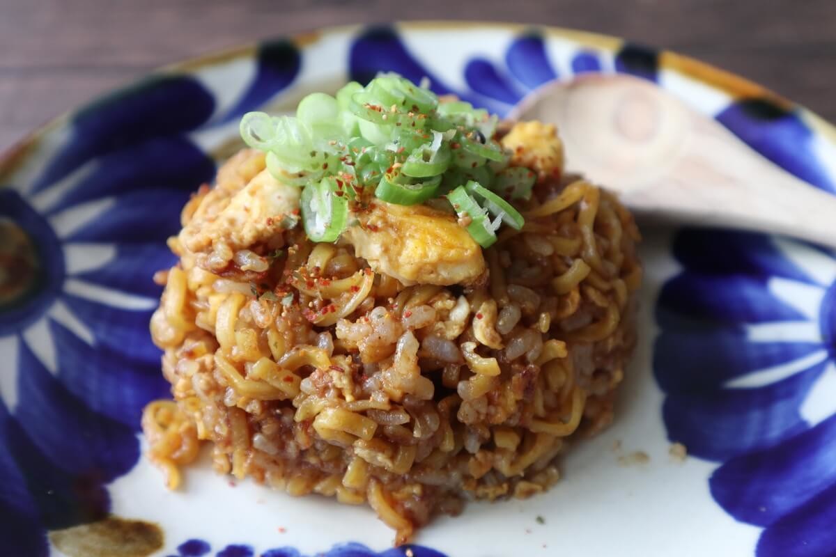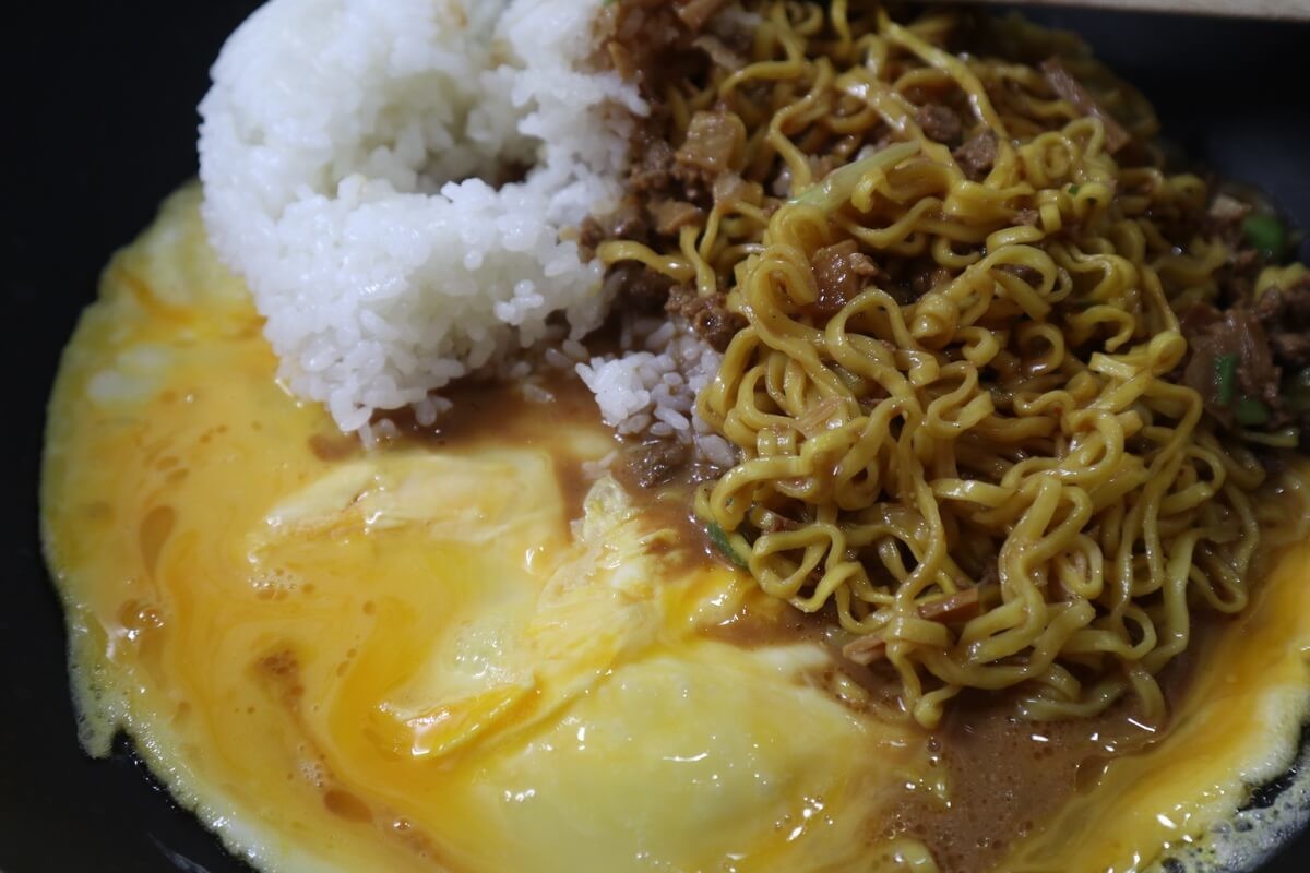 「すみれ飯」の完成です! 深みのあるスープを調味料として使っているので食べ応えのあるがっつり系の一品!