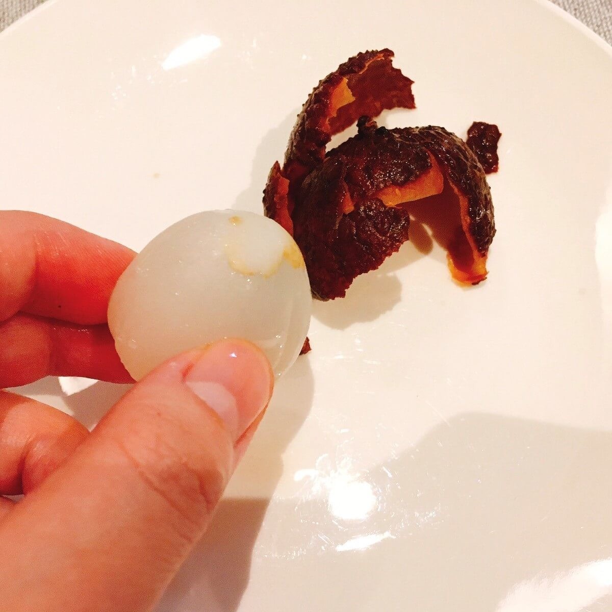 ライチの皮は、見た目こそゴツゴツしていますが、案外つるんと向けます♪
