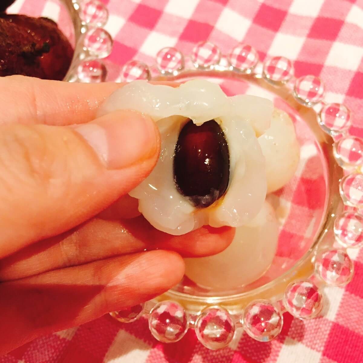 ライチには、1~1.5cmの種があるので、子どもが食べるときは取り除くと安心です♪