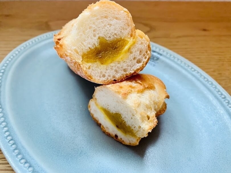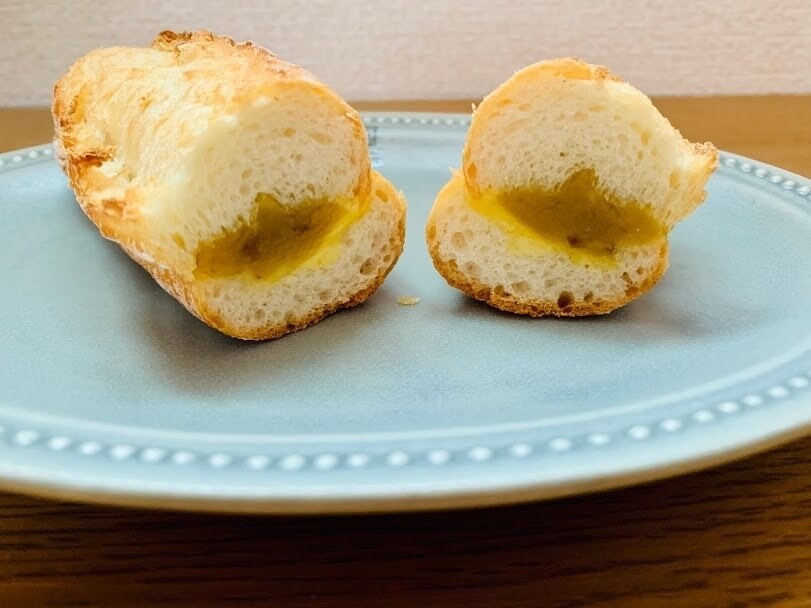 フランスパンとの比率的に餡とバターが少ないような気がしますが、食べるとそんなことはありません。 パン生地は噛み応えがあり噛むほどに小麦の旨味が出てきます。