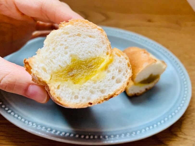 ちょっとパンが硬いな~と感じた方は、レンジで少し温めるとふんわり感が出ますよ。さらにバターが溶けてうまうまです♪