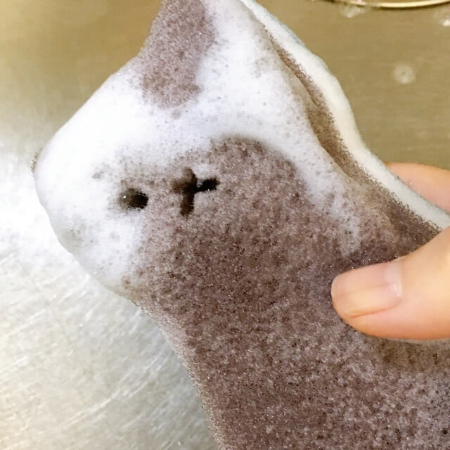 キッチンスポンジは犬の形と猫の形がありましたが、私は猫の型の方を購入しました。なぜなら店舗の見本を実際に持ってみて、手にフィットしたのが猫の形だったからです(笑)。