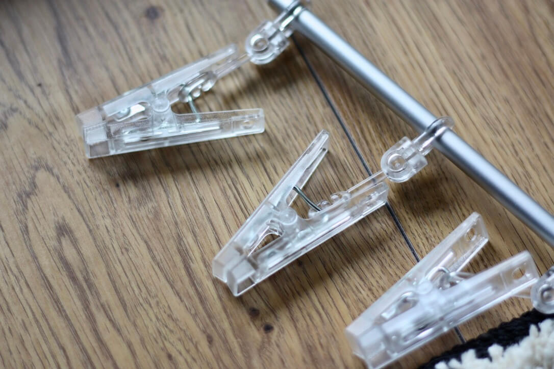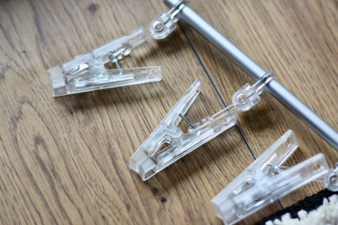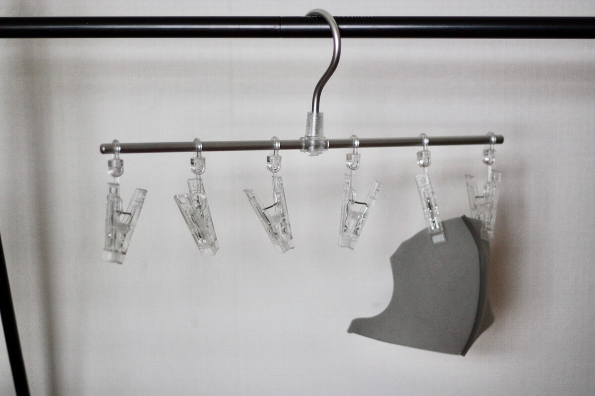 もちろん家にピンチがたくさんついた「小物干し」はあるのですが、マスク2〜3枚のためにわざわざ大きい小物干しを使うのも面倒で。
