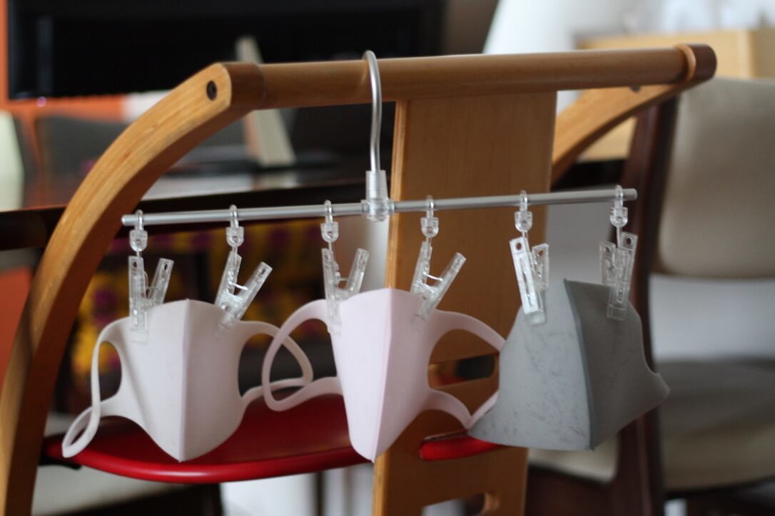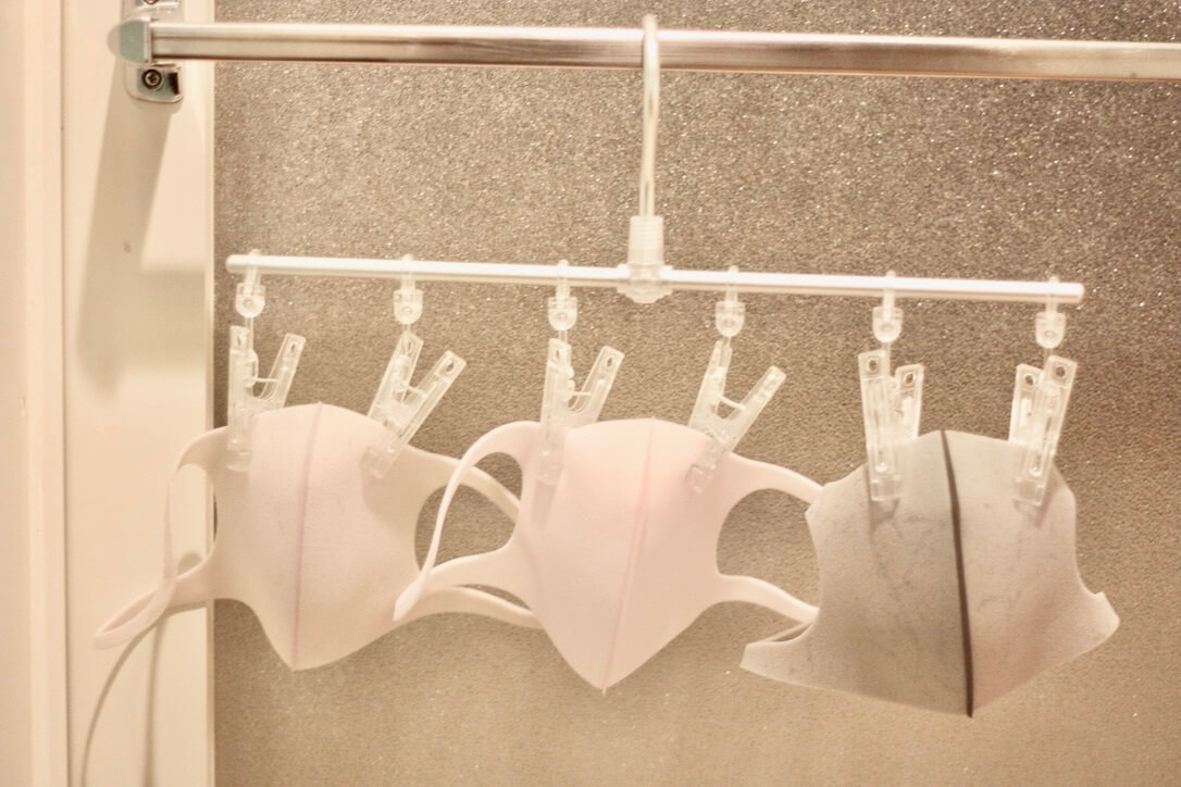 その日使ったマスクを夜に手洗いし、室内で干しておく……というルーティンです。