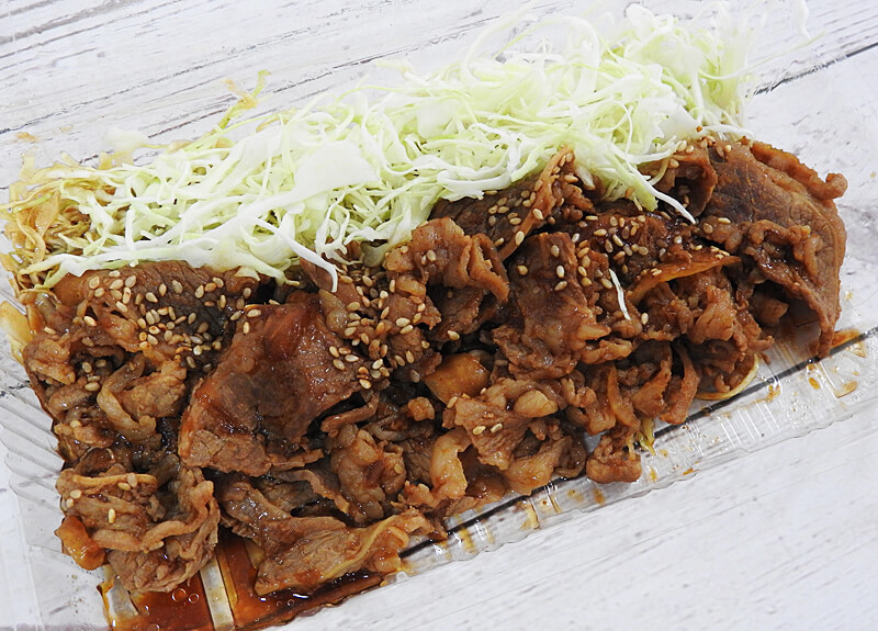 牛生姜焼きだけを見ていると「吉野家や松屋の新メニューなのかな?」と思ってしまいますね。肉汁が滴り落ちていてとっても美味しそう……!