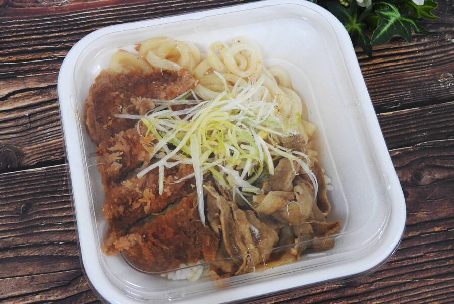 今回は、豚すき煮肉うどんチキンカツ丼弁当をお持ち帰りしてみました。