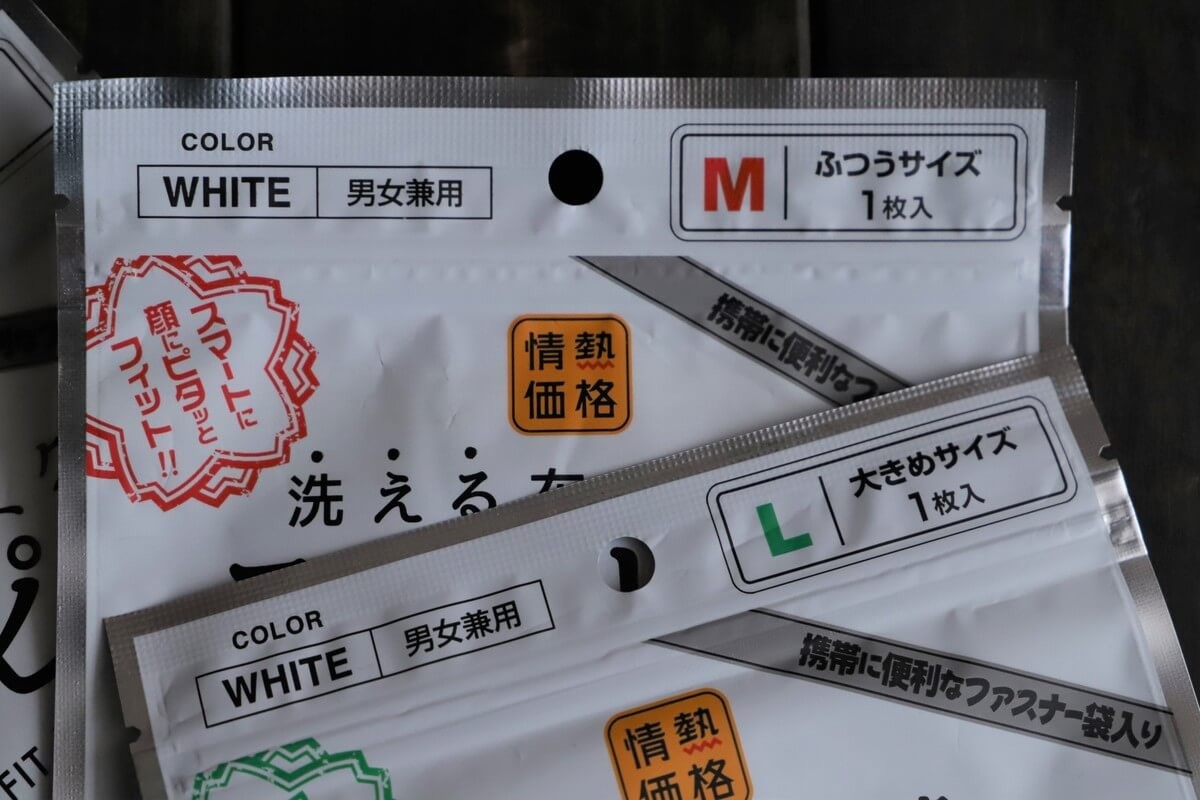 私が訪れた店舗ではLサイズとMサイズの2種類があり、色は白と黒がありました。