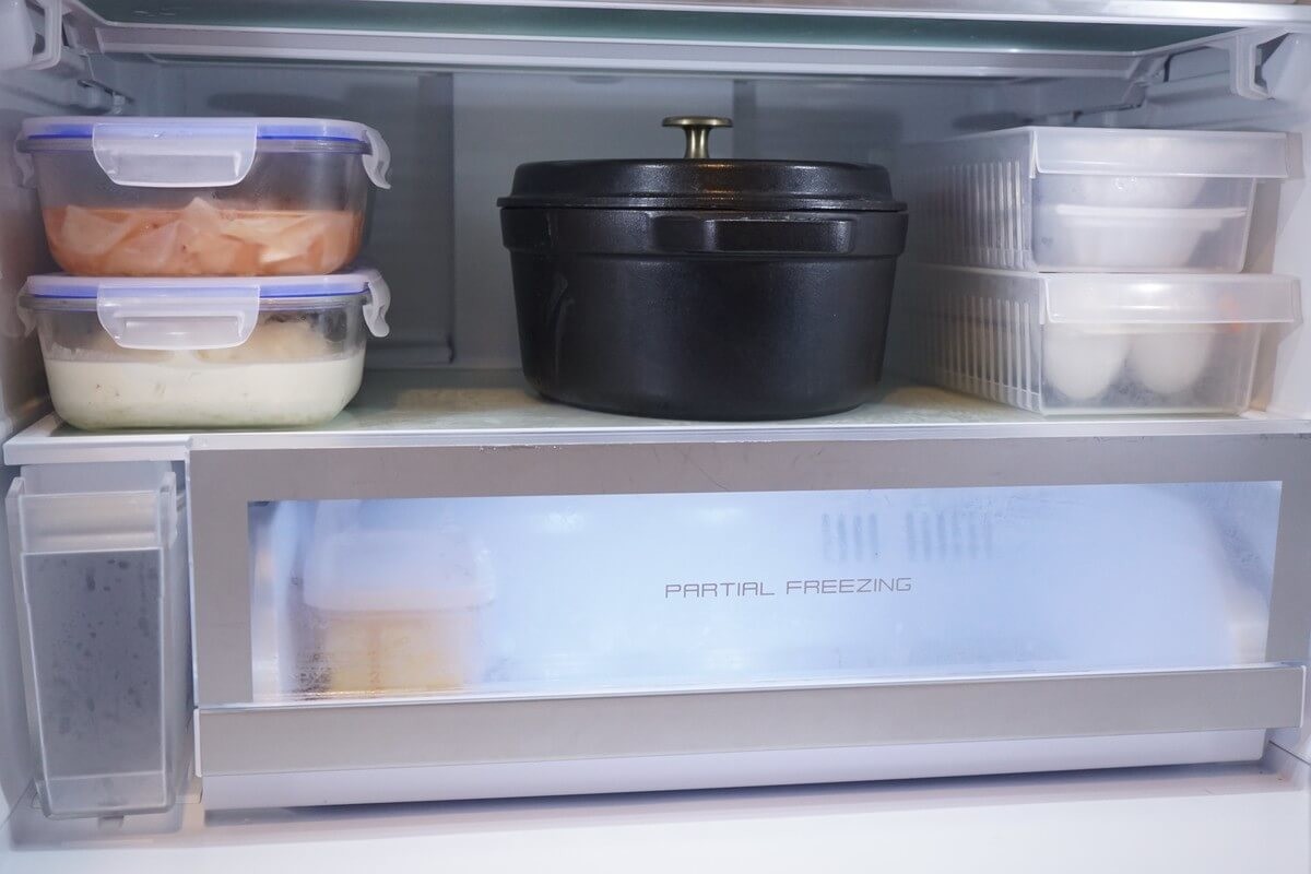 我が家の冷蔵庫にぴったりのサイズで、縦に並べても横に並べてもデットスペースを作ることなく冷蔵庫に収まるところもお気に入りポイントです。