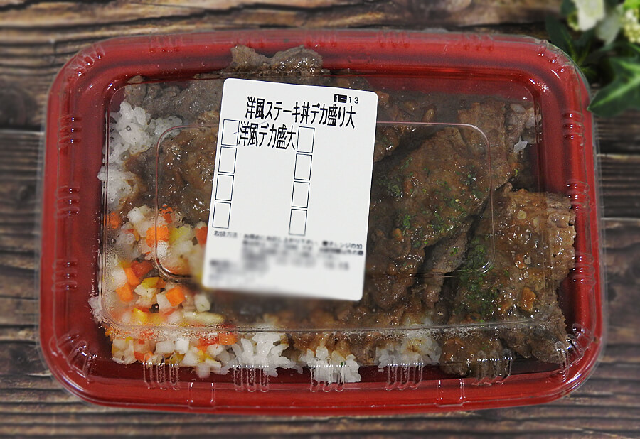 食欲がある私は迷わず「牛ステーキ丼 洋風ガーリックソース(デカ盛りサイズ)」1,150円(税込)を持ち帰り!1,000円オーバーとなかなかのお値段ですが、牛ステーキと考えるとこんなものなのかな……と勝手に納得しました。