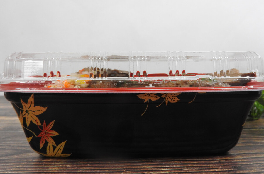 外側から見る限りボリューム感はよくわかりませんが、手で持った時に重量感がひしひしと伝わってきました。ごはん大盛りにしたためか、横から見ると容器が深い……!ガッツリ食べたい時にはちょうどいいですね。