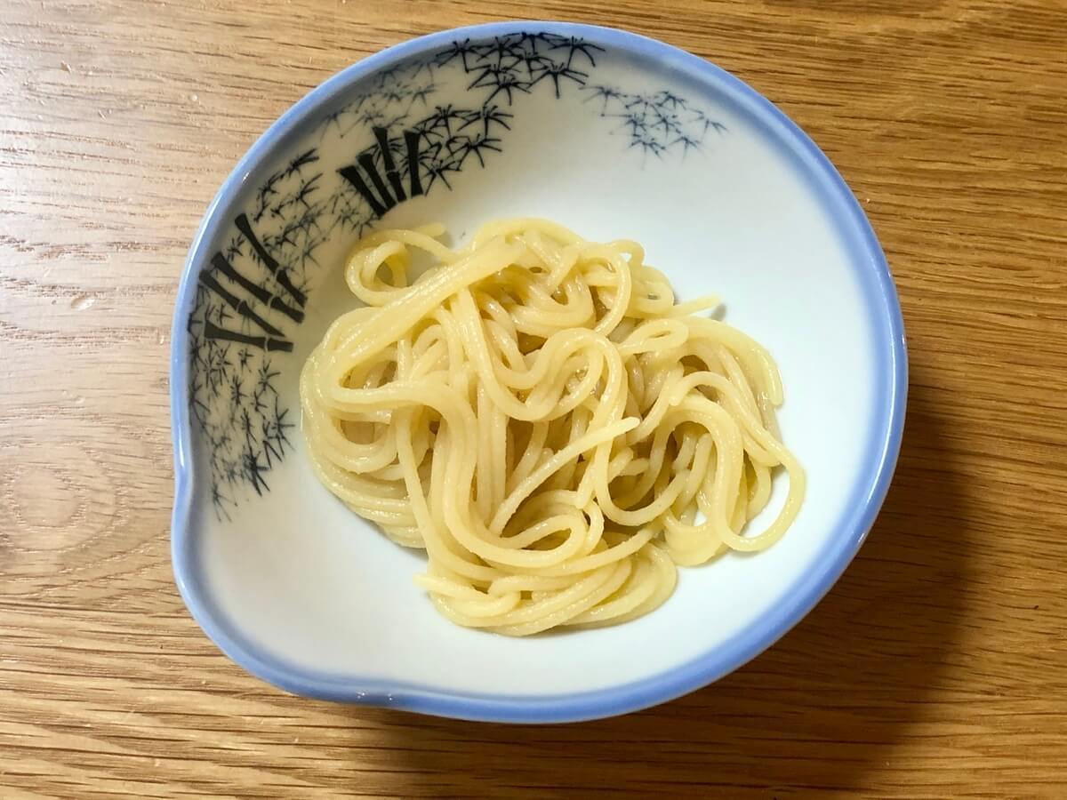麺単体で食べると少しざらついた感じがあり、独特の食感なのですが、“甘さ”を感じたのち、後味には少しほろ苦さが残ります。