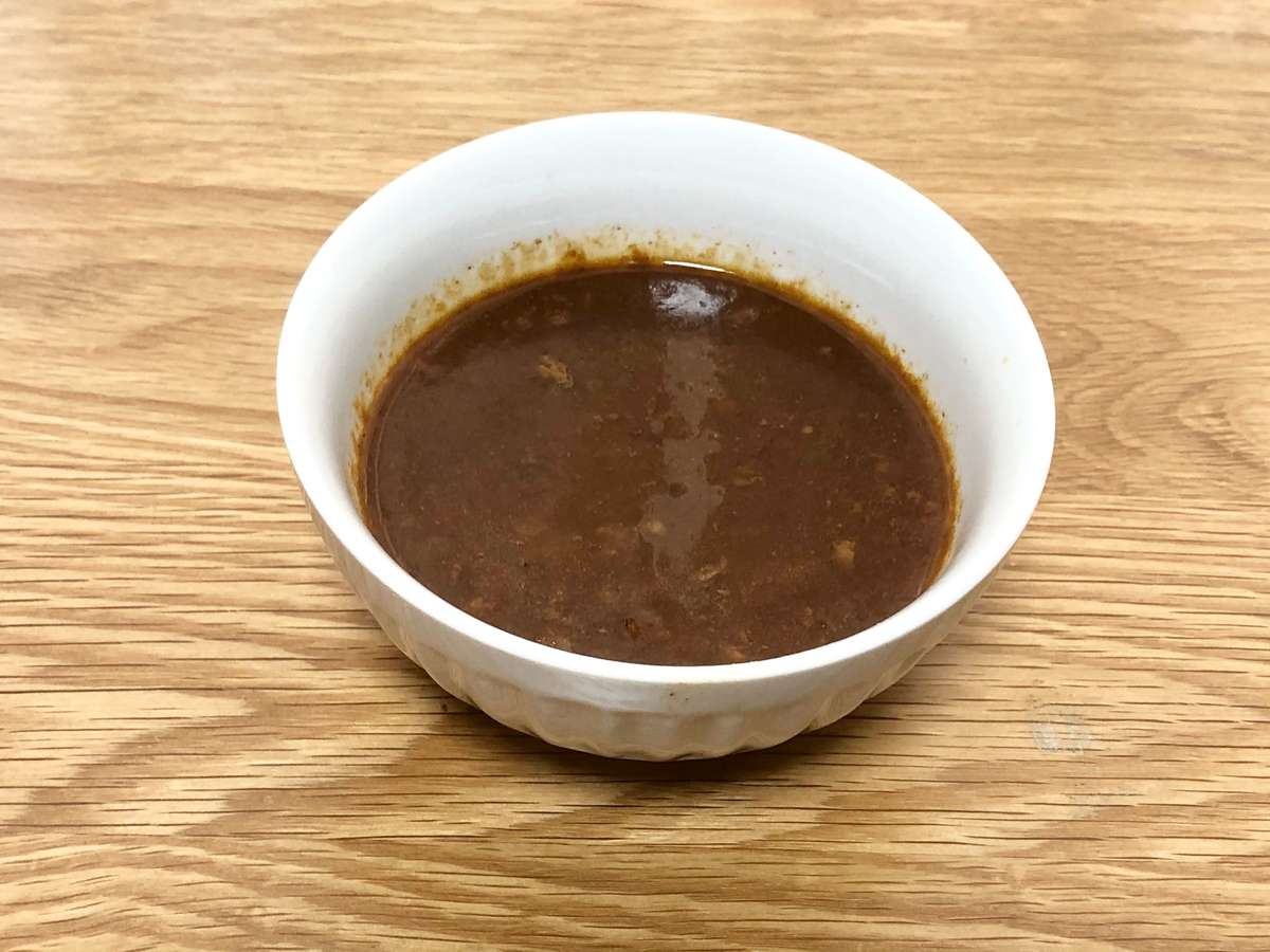 普段作っているソースをかけてみました。はじめはソースをかけてもざらつきや麺の甘さに違和感があったものの、3口も食べると慣れ、結局おかわりもできるほど。