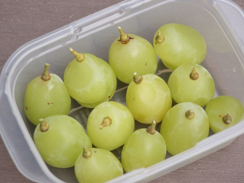 2つ目は、房から外し、粒で保存する場合です。一つ一つ房から外し、保存容器などの密閉容器に入れて保存して下さい。この際、手で粒を取るのではなく、キッチンバサミを使ってぶどうの軸を残すようにするのがポイントです。