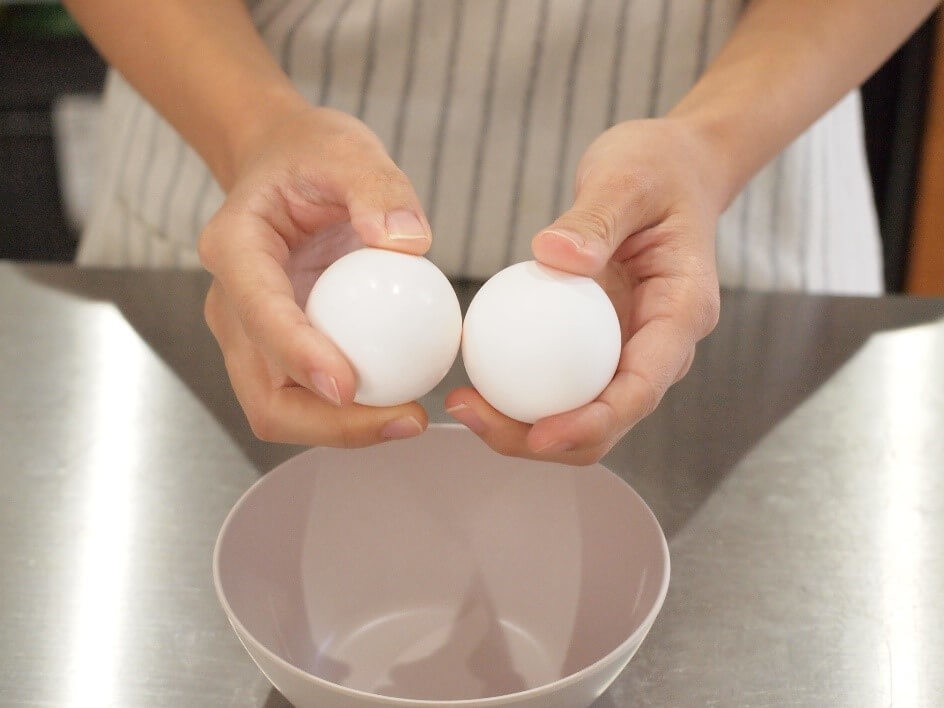 卵のきれいな割り方①卵2個を持ってぶつける