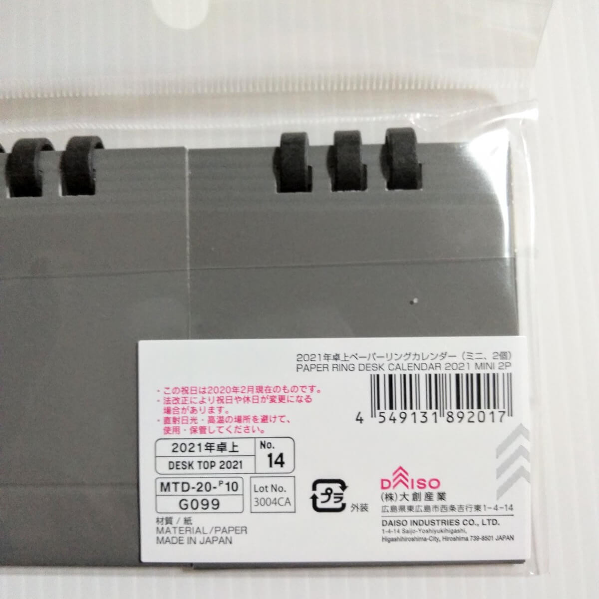 - 2021年卓上ペーパーリングカレンダー(ミニ、2個) 100円(税別)