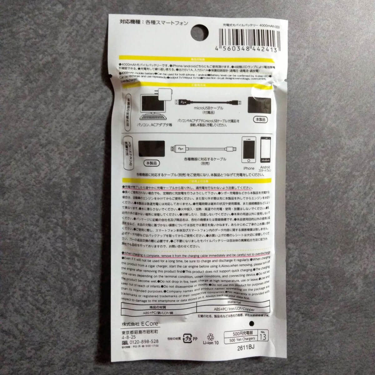 - スマートフォンモバイルバッテリー 4000mAh ブラック、ホワイト 各500円(税別)