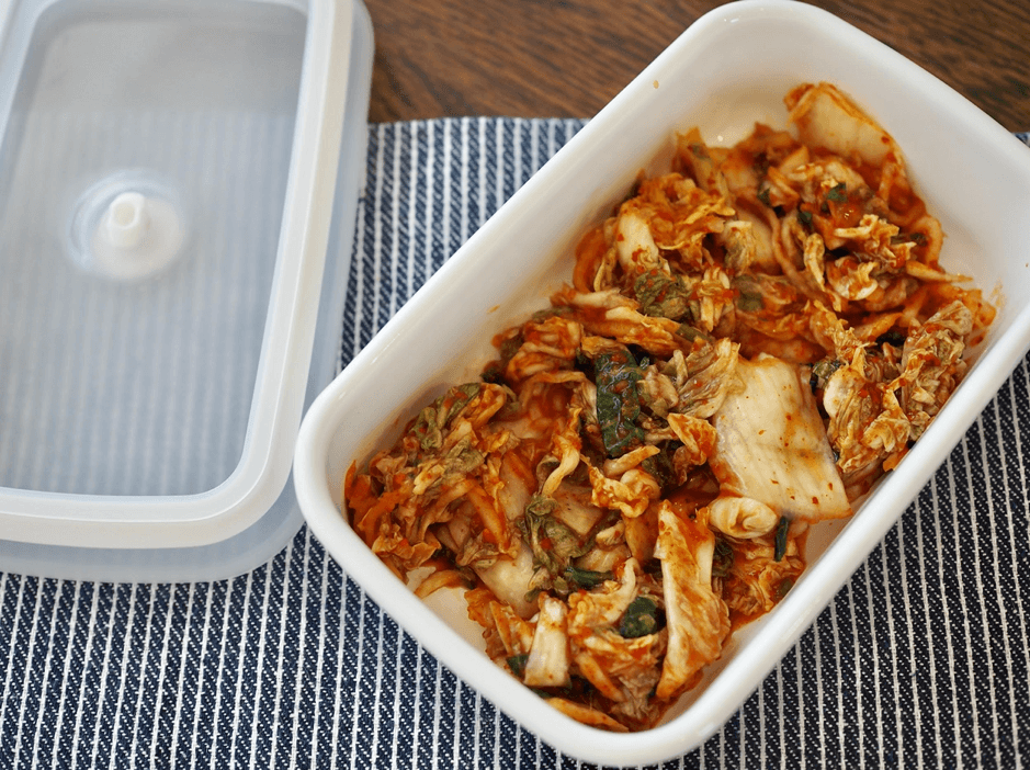 食べかけのキムチはパックのまま保存するとどうしても匂いが漏れてしまいますが、これに移し替えると匂いが全く漏れません。ホーローは塩や酸にも強いので、他にも梅干しを保存したり自家製のぬか床を作ったりと、いろいろな使い方ができますよ。