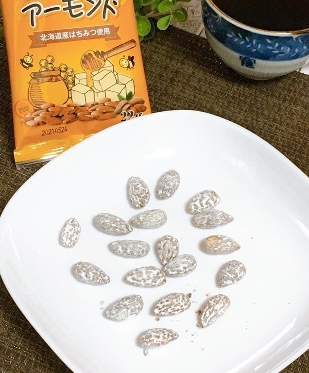 ダイソー「ハニーバターアーモンド」と「ハニーバターくるみ」は購入当初、「この量で100円は高いし、リピはない」と思っていたのですが「ナッツ類は食べすぎてはいけない」ということを知ったときに22gの量で納得できました。