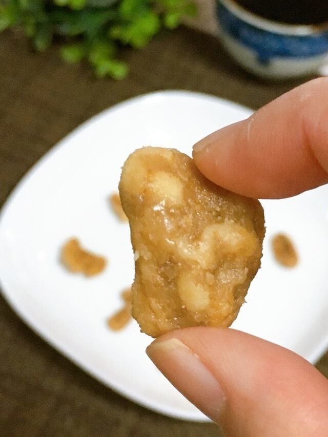 食べてみると、アーモンドよりも食感が柔らかいのですぐに口の中でなくなってしまいます。