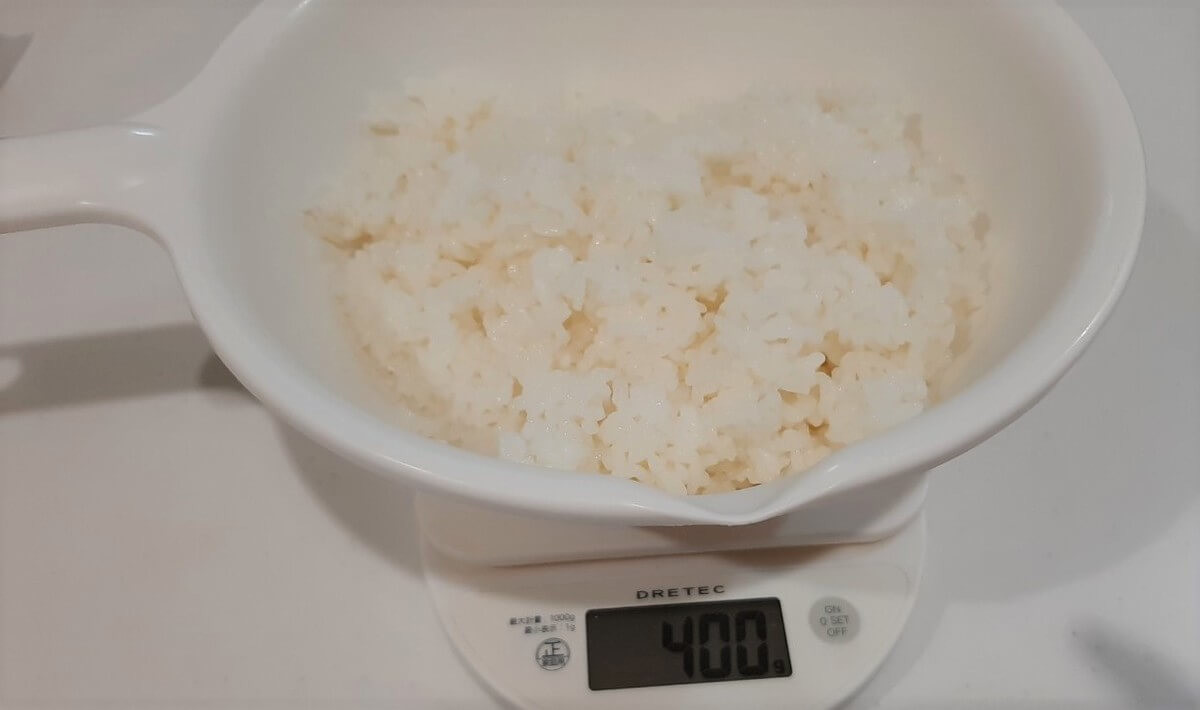 1人前が約200gなので2人前の400gのご飯を用意します。目分量でもOKですよ!