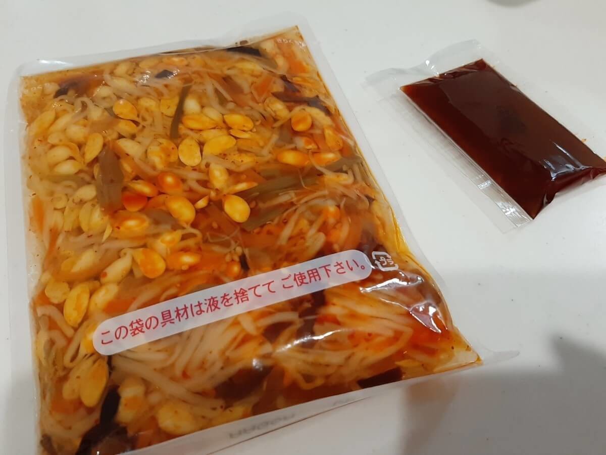 中にはビビンバの具と特製タレが入っています。これで2人前のビビンバがつくれます。