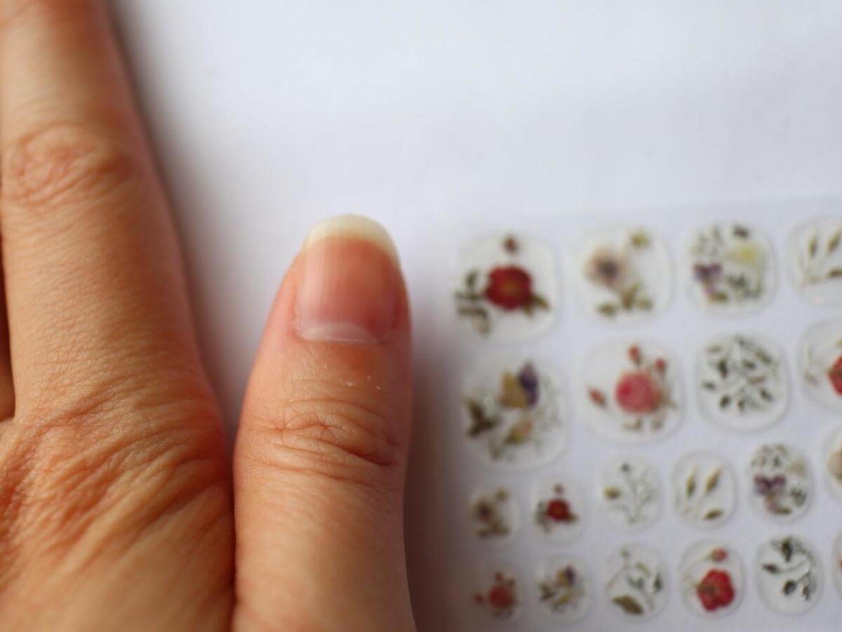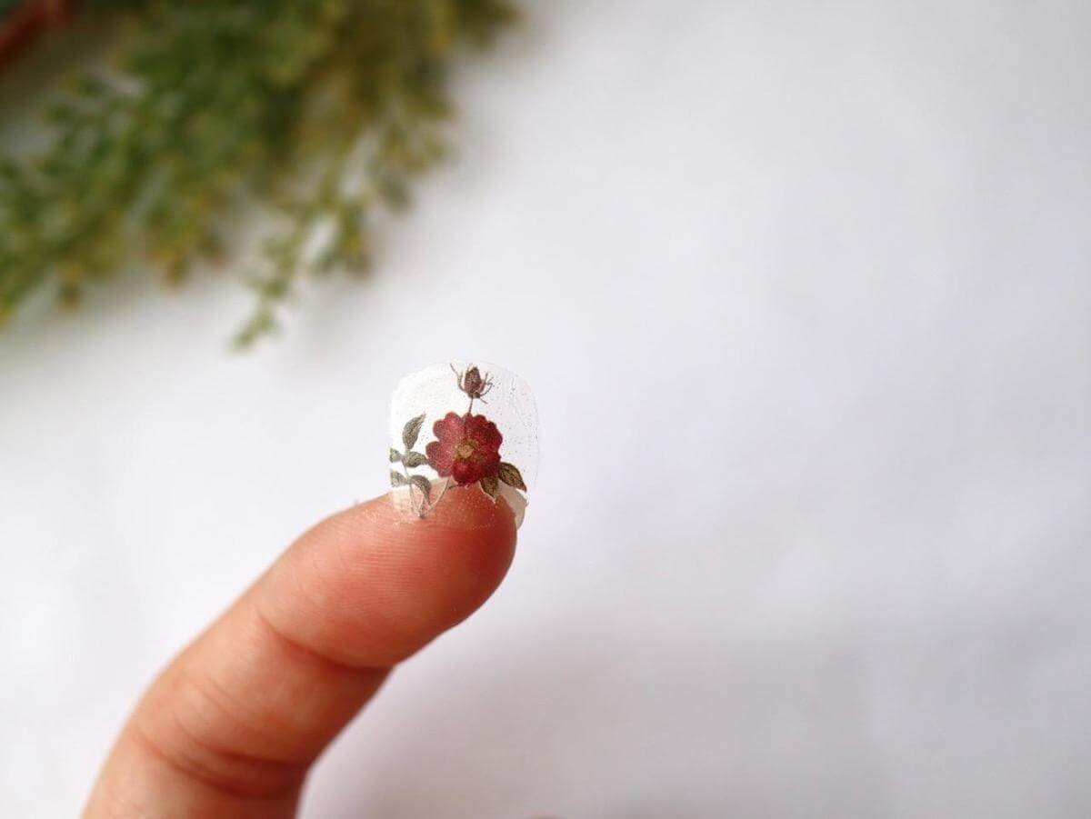 ベースは透明なシールになっているので、そのままの爪に貼ってもかわいいですが、好みでポリッシュの上から貼る方法もおすすめ。