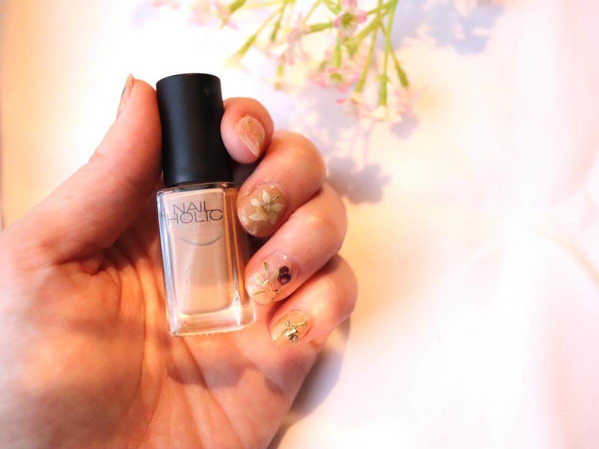 ヌーディーなカラーを塗っておくと、地爪に直接貼るよりもベースの色味が均一なので、シールのデザインがよく映えます!